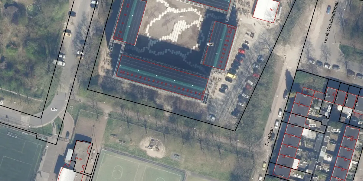 Het perceel waarop Pagelaan 193 staat heeft een oppervlakte van 7766 m². Dit is een zeer groot perceel. De perceeloppervlakte wordt geregistreerd door het Kadaster. Gedetailleerde informatie over de maten van dit perceel kunt u vinden in het rapport Kadastrale kaart met maatvoering van Pagelaan 193.