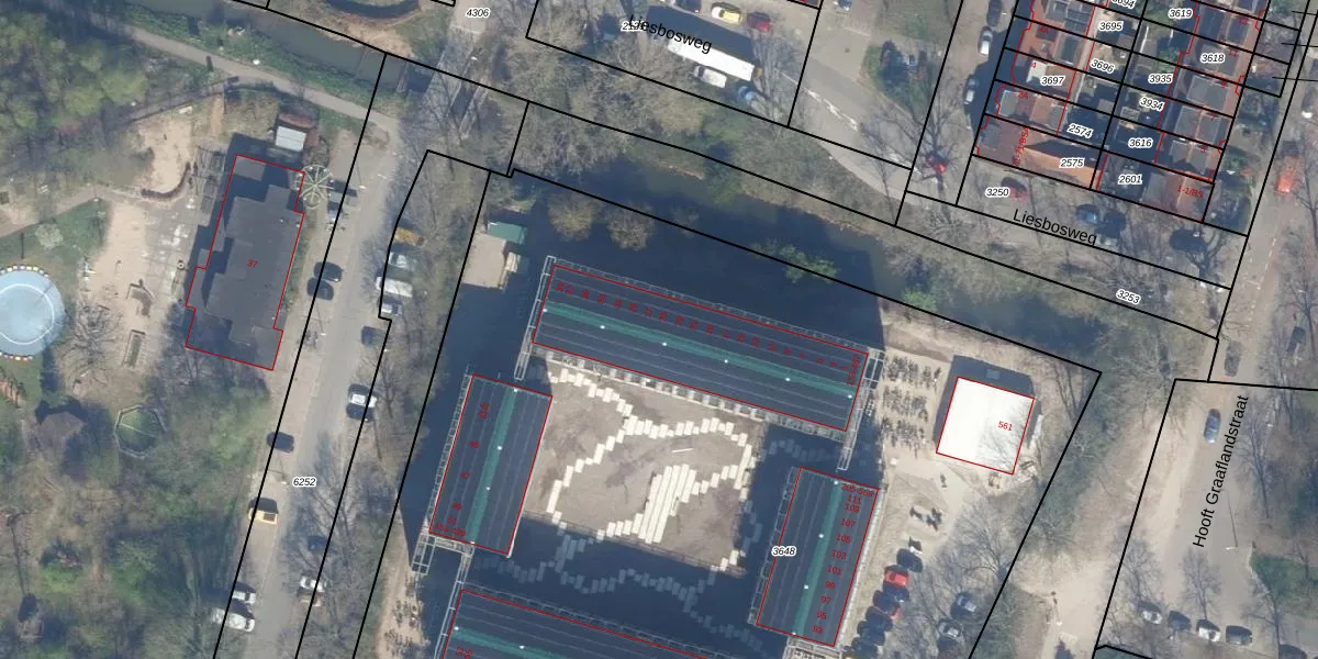 Het perceel waarop Pagelaan 251 staat heeft een oppervlakte van 7766 m². Dit is een zeer groot perceel. De perceeloppervlakte wordt geregistreerd door het Kadaster. Gedetailleerde informatie over de maten van dit perceel kunt u vinden in het rapport Kadastrale kaart met maatvoering van Pagelaan 251.