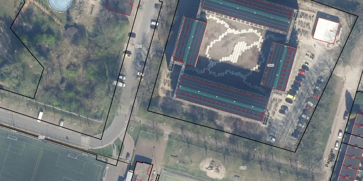 Het perceel waarop Pagelaan 277 staat heeft een oppervlakte van 7766 m². Dit is een zeer groot perceel. De perceeloppervlakte wordt geregistreerd door het Kadaster. Gedetailleerde informatie over de maten van dit perceel kunt u vinden in het rapport Kadastrale kaart met maatvoering van Pagelaan 277.