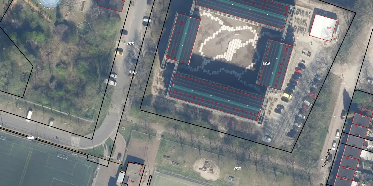 Het perceel waarop Pagelaan 283 staat heeft een oppervlakte van 7766 m². Dit is een zeer groot perceel. De perceeloppervlakte wordt geregistreerd door het Kadaster. Gedetailleerde informatie over de maten van dit perceel kunt u vinden in het rapport Kadastrale kaart met maatvoering van Pagelaan 283.