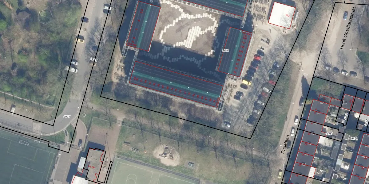 Het perceel waarop Pagelaan 299 staat heeft een oppervlakte van 7766 m². Dit is een zeer groot perceel. De perceeloppervlakte wordt geregistreerd door het Kadaster. Gedetailleerde informatie over de maten van dit perceel kunt u vinden in het rapport Kadastrale kaart met maatvoering van Pagelaan 299.