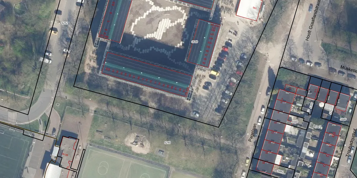 Het perceel waarop Pagelaan 311 staat heeft een oppervlakte van 7766 m². Dit is een zeer groot perceel. De perceeloppervlakte wordt geregistreerd door het Kadaster. Gedetailleerde informatie over de maten van dit perceel kunt u vinden in het rapport Kadastrale kaart met maatvoering van Pagelaan 311.
