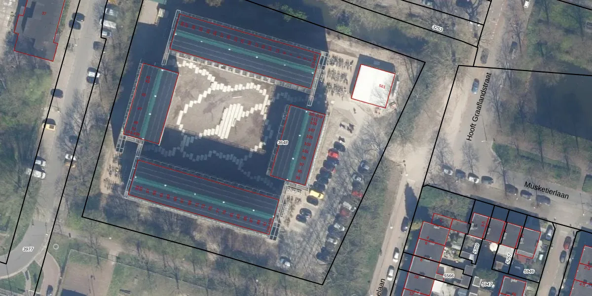 Het perceel waarop Pagelaan 437 staat heeft een oppervlakte van 7766 m². Dit is een zeer groot perceel. De perceeloppervlakte wordt geregistreerd door het Kadaster. Gedetailleerde informatie over de maten van dit perceel kunt u vinden in het rapport Kadastrale kaart met maatvoering van Pagelaan 437.