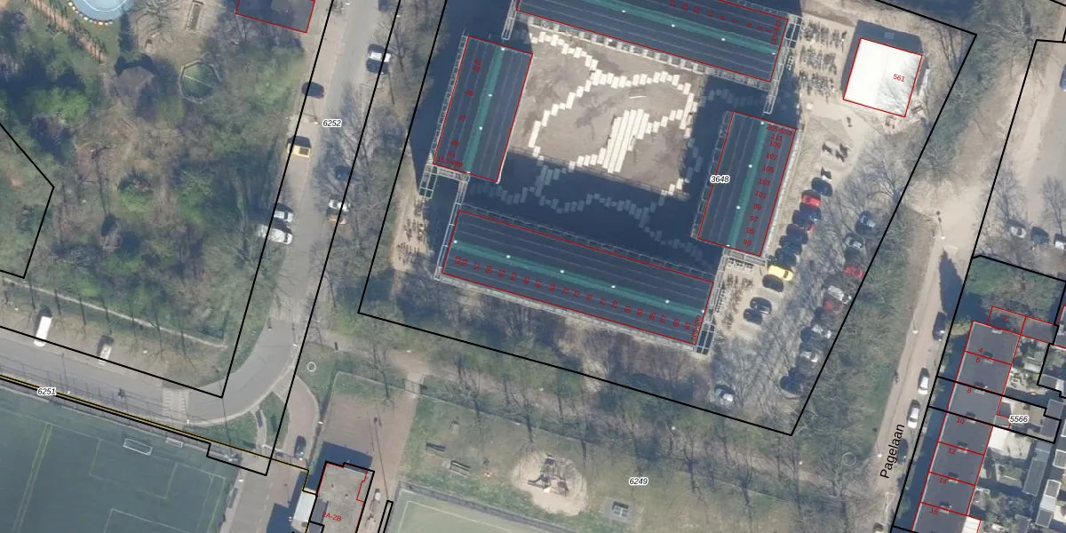 Het perceel waarop Pagelaan 513 staat heeft een oppervlakte van 7766 m². Dit is een zeer groot perceel. De perceeloppervlakte wordt geregistreerd door het Kadaster. Gedetailleerde informatie over de maten van dit perceel kunt u vinden in het rapport Kadastrale kaart met maatvoering van Pagelaan 513.