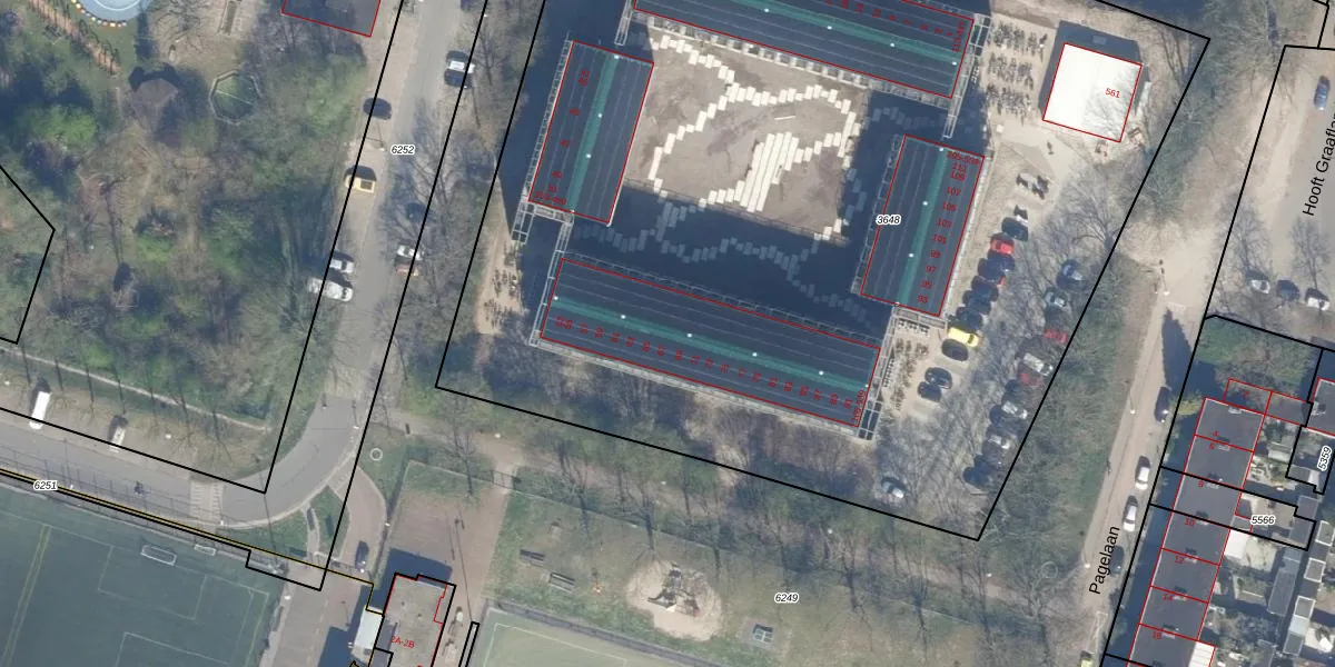 Het perceel waarop Pagelaan 515 staat heeft een oppervlakte van 7766 m². Dit is een zeer groot perceel. De perceeloppervlakte wordt geregistreerd door het Kadaster. Gedetailleerde informatie over de maten van dit perceel kunt u vinden in het rapport Kadastrale kaart met maatvoering van Pagelaan 515.