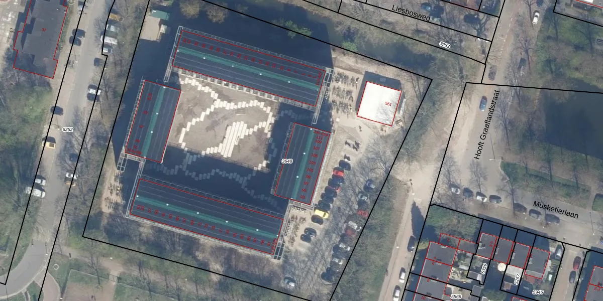 Het perceel waarop Pagelaan 553 staat heeft een oppervlakte van 7766 m². Dit is een zeer groot perceel. De perceeloppervlakte wordt geregistreerd door het Kadaster. Gedetailleerde informatie over de maten van dit perceel kunt u vinden in het rapport Kadastrale kaart met maatvoering van Pagelaan 553.