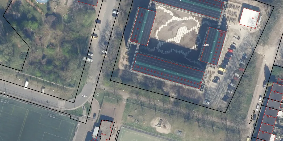 Het perceel waarop Pagelaan 57 staat heeft een oppervlakte van 7766 m². Dit is een zeer groot perceel. De perceeloppervlakte wordt geregistreerd door het Kadaster. Gedetailleerde informatie over de maten van dit perceel kunt u vinden in het rapport Kadastrale kaart met maatvoering van Pagelaan 57.