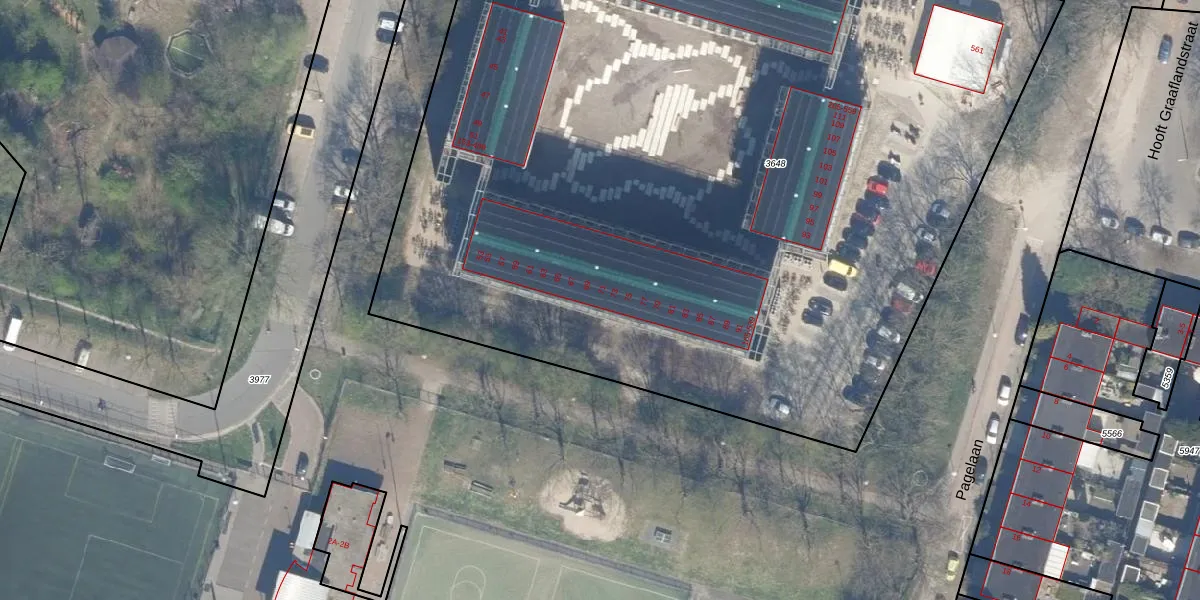 Het perceel waarop Pagelaan 71 staat heeft een oppervlakte van 7766 m². Dit is een zeer groot perceel. De perceeloppervlakte wordt geregistreerd door het Kadaster. Gedetailleerde informatie over de maten van dit perceel kunt u vinden in het rapport Kadastrale kaart met maatvoering van Pagelaan 71.