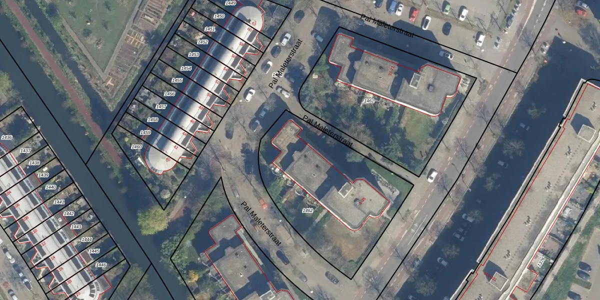 Pal Maleterstraat 33 is gelegen op kadastraal perceel UTT00L1462. Deze kadastrale aanduiding is uniek en wordt gebruikt door het Kadaster om eigendomsrechten en andere zakelijke rechten vast te leggen. Het perceel maakt onderdeel uit van de kadastrale gemeente Utrecht.