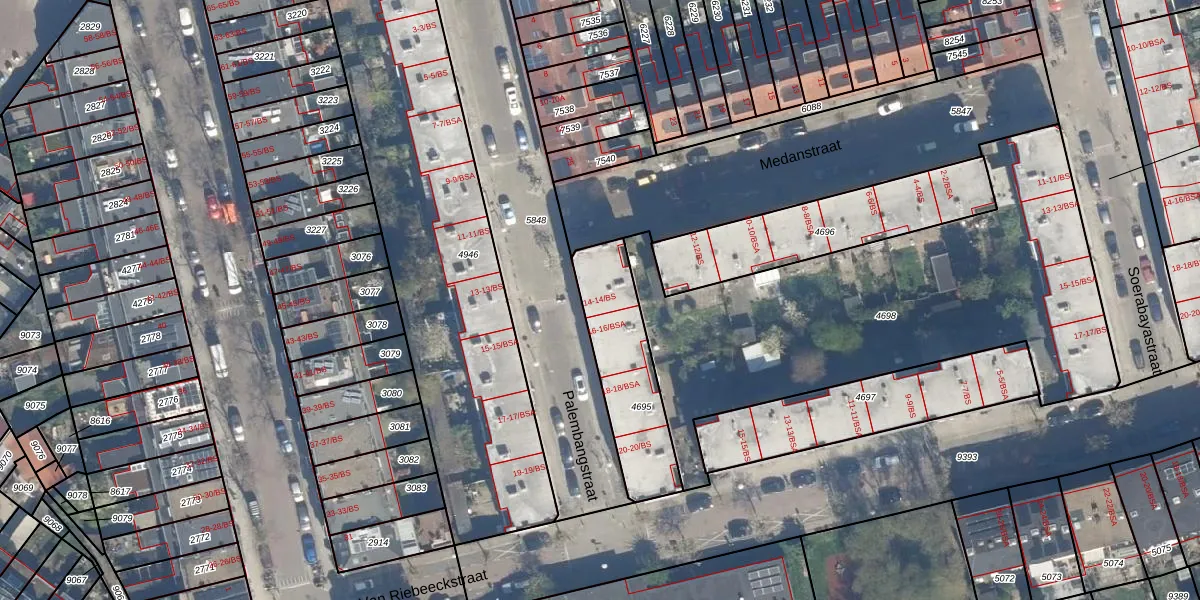 Het perceel waarop Palembangstraat 14-BS staat heeft een oppervlakte van 395 m². Dit is een groot perceel. De perceeloppervlakte wordt geregistreerd door het Kadaster. Gedetailleerde informatie over de maten van dit perceel kunt u vinden in het rapport Kadastrale kaart met maatvoering van Palembangstraat 14-BS.