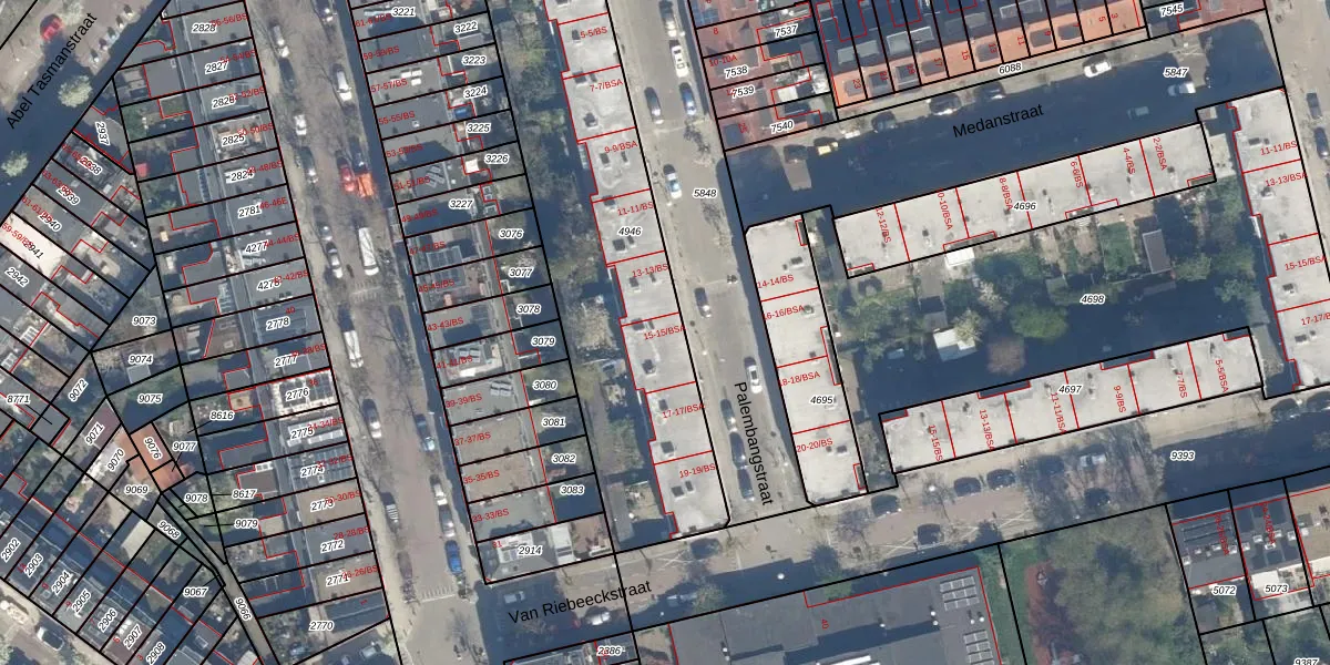 Palembangstraat 15-BS is gelegen op kadastraal perceel CTR00C4946. Deze kadastrale aanduiding is uniek en wordt gebruikt door het Kadaster om eigendomsrechten en andere zakelijke rechten vast te leggen. Het perceel maakt onderdeel uit van de kadastrale gemeente Catharijne.