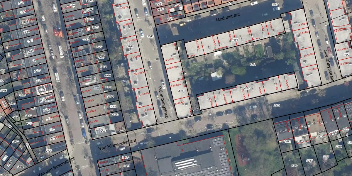 Palembangstraat 18-BSA is gelegen op kadastraal perceel CTR00C4695. Deze kadastrale aanduiding is uniek en wordt gebruikt door het Kadaster om eigendomsrechten en andere zakelijke rechten vast te leggen. Het perceel maakt onderdeel uit van de kadastrale gemeente Catharijne.