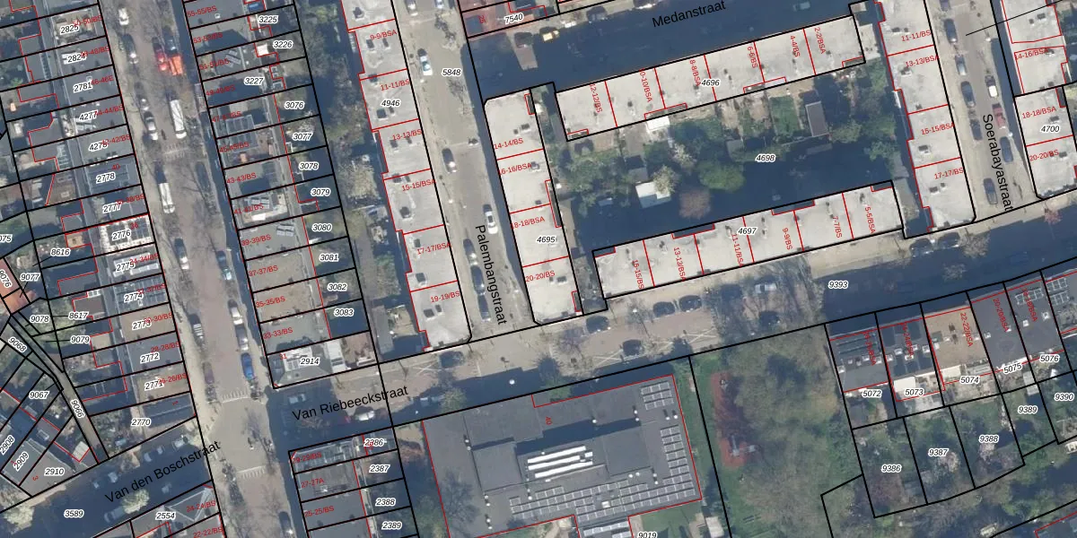 Het perceel waarop Palembangstraat 20 staat heeft een oppervlakte van 395 m². Dit is een groot perceel. De perceeloppervlakte wordt geregistreerd door het Kadaster. Gedetailleerde informatie over de maten van dit perceel kunt u vinden in het rapport Kadastrale kaart met maatvoering van Palembangstraat 20.
