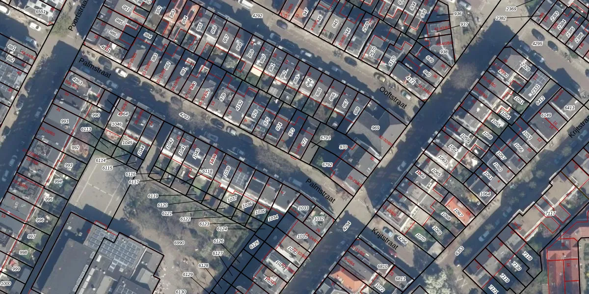 Het perceel waarop Palmstraat 1 staat heeft een oppervlakte van 74 m². Dit is een klein perceel. De perceeloppervlakte wordt geregistreerd door het Kadaster. Gedetailleerde informatie over de maten van dit perceel kunt u vinden in het rapport Kadastrale kaart met maatvoering van Palmstraat 1.