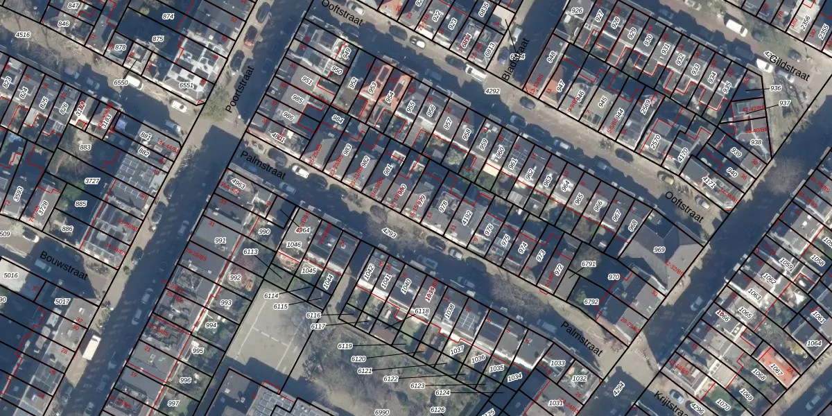 Het perceel waarop Palmstraat 15-BS staat heeft een oppervlakte van 82 m². Dit is een klein perceel. De perceeloppervlakte wordt geregistreerd door het Kadaster. Gedetailleerde informatie over de maten van dit perceel kunt u vinden in het rapport Kadastrale kaart met maatvoering van Palmstraat 15-BS.