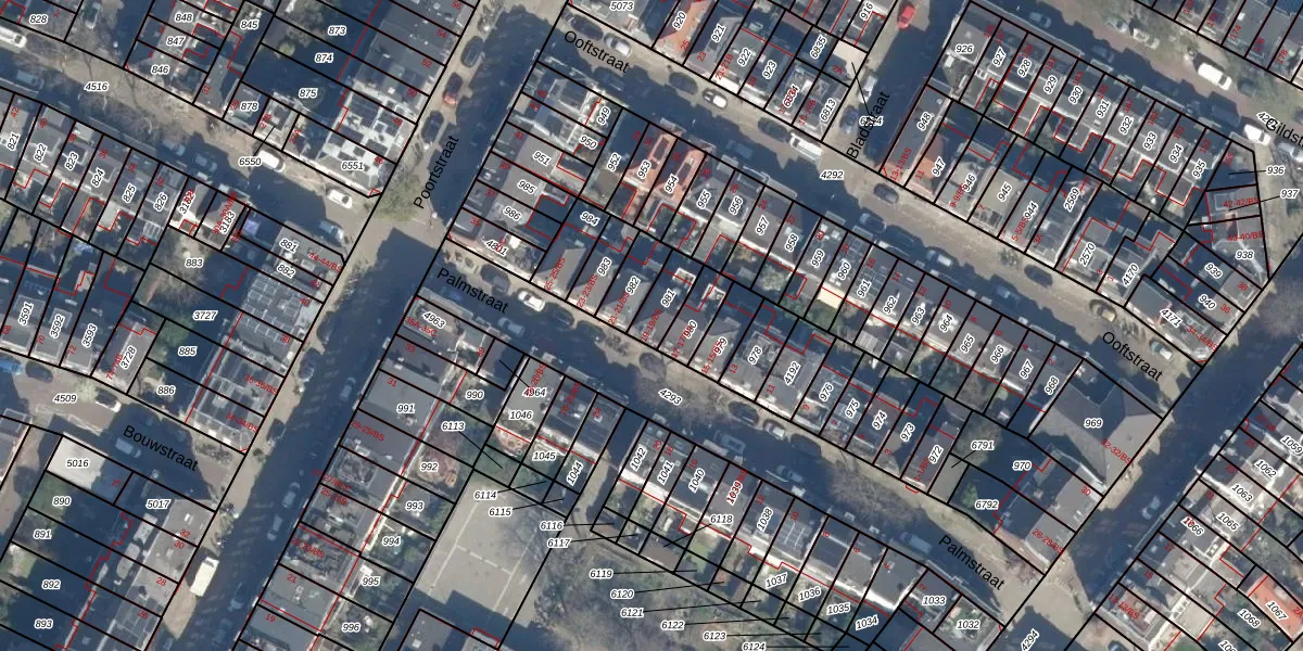 Het perceel waarop Palmstraat 19-BS staat heeft een oppervlakte van 78 m². Dit is een klein perceel. De perceeloppervlakte wordt geregistreerd door het Kadaster. Gedetailleerde informatie over de maten van dit perceel kunt u vinden in het rapport Kadastrale kaart met maatvoering van Palmstraat 19-BS.