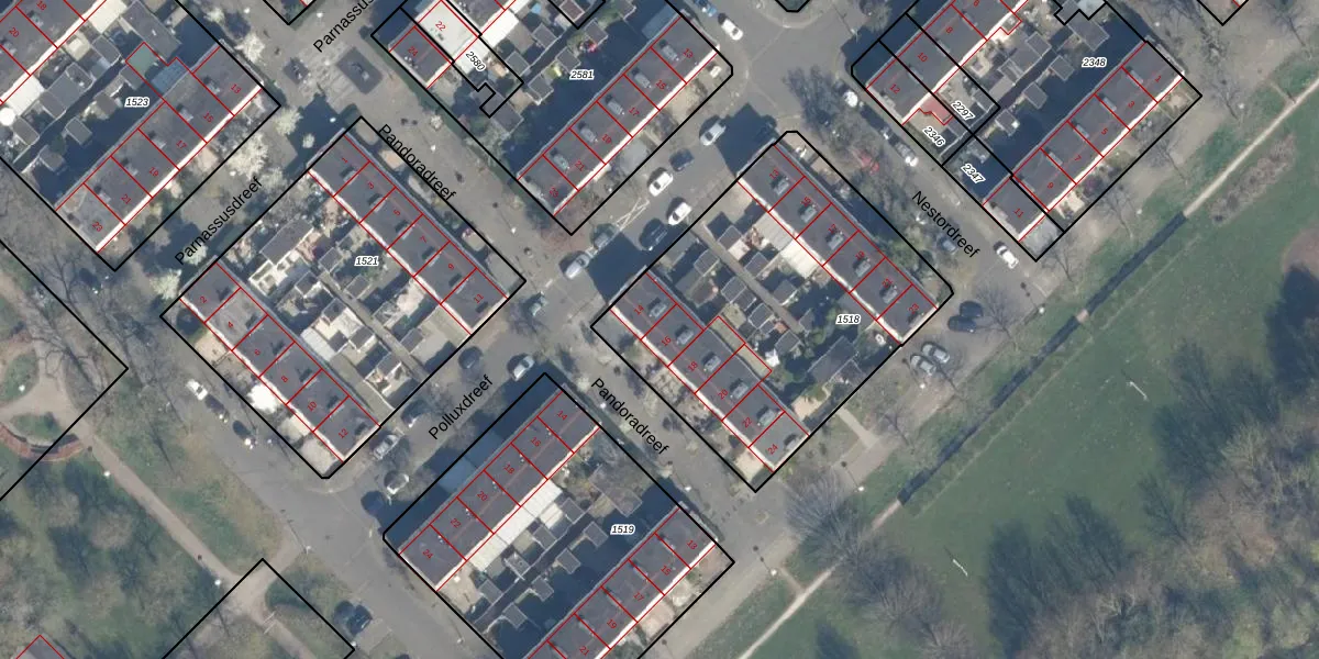 Pandoradreef 16 is gelegen op kadastraal perceel UTT00H1518. Deze kadastrale aanduiding is uniek en wordt gebruikt door het Kadaster om eigendomsrechten en andere zakelijke rechten vast te leggen. Het perceel maakt onderdeel uit van de kadastrale gemeente Utrecht.