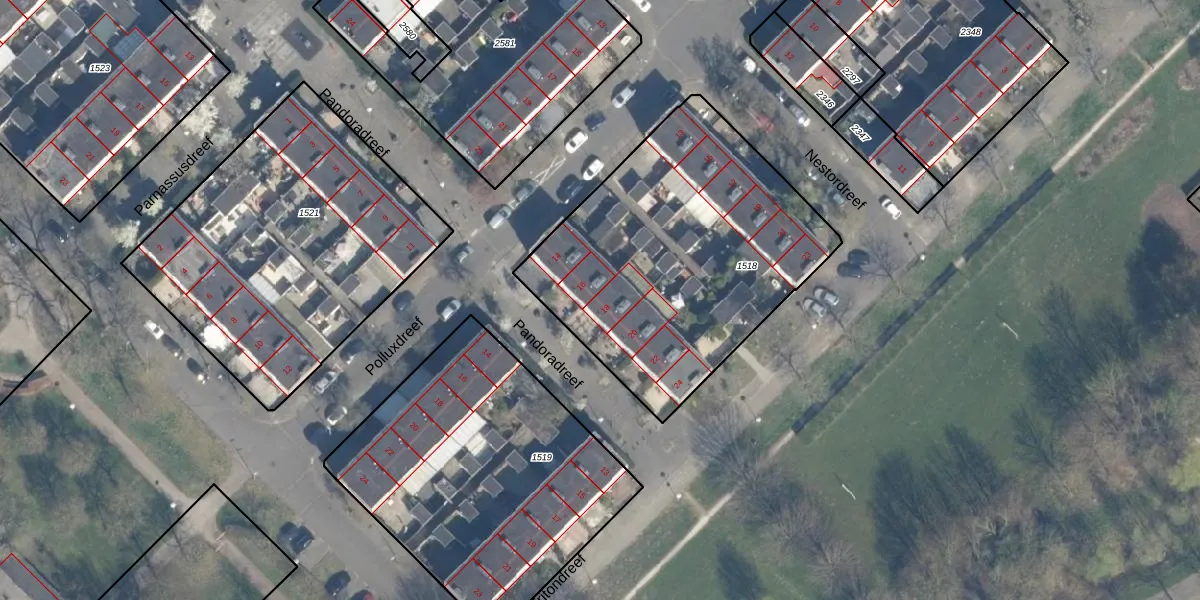 Pandoradreef 18 is gelegen op kadastraal perceel UTT00H1518. Deze kadastrale aanduiding is uniek en wordt gebruikt door het Kadaster om eigendomsrechten en andere zakelijke rechten vast te leggen. Het perceel maakt onderdeel uit van de kadastrale gemeente Utrecht.