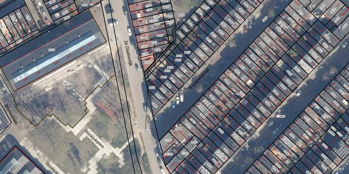 Gebruik de zoekbalk of klik op een perceel voor informatie over de adressen binnen dit perceel.