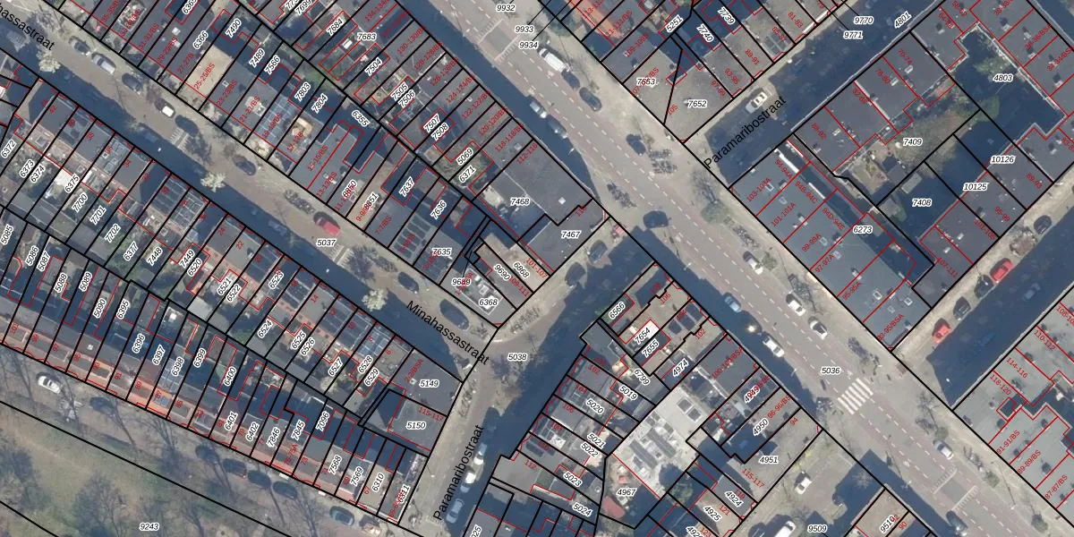 Het perceel waarop Paramaribostraat 105 staat heeft een oppervlakte van 61 m². Dit is een klein perceel. De perceeloppervlakte wordt geregistreerd door het Kadaster. Gedetailleerde informatie over de maten van dit perceel kunt u vinden in het rapport Kadastrale kaart met maatvoering van Paramaribostraat 105.
