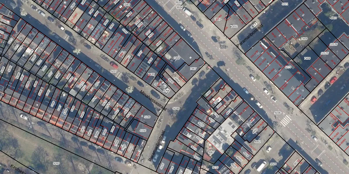 Het perceel waarop Paramaribostraat 111 staat heeft een oppervlakte van 58 m². Dit is een klein perceel. De perceeloppervlakte wordt geregistreerd door het Kadaster. Gedetailleerde informatie over de maten van dit perceel kunt u vinden in het rapport Kadastrale kaart met maatvoering van Paramaribostraat 111.