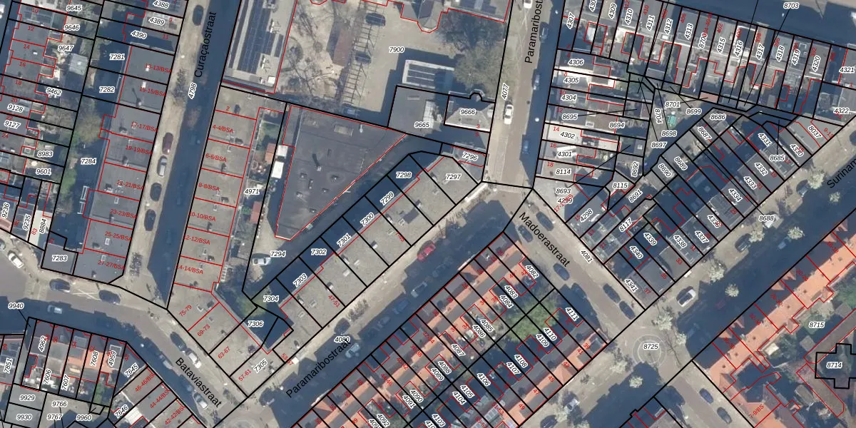 Het perceel waarop Paramaribostraat 19 staat heeft een oppervlakte van 114 m². Dit is een middelgroot perceel. De perceeloppervlakte wordt geregistreerd door het Kadaster. Gedetailleerde informatie over de maten van dit perceel kunt u vinden in het rapport Kadastrale kaart met maatvoering van Paramaribostraat 19.