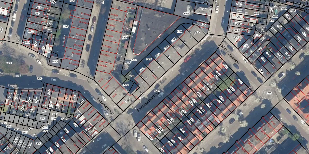 Het perceel waarop Paramaribostraat 47 staat heeft een oppervlakte van 115 m². Dit is een middelgroot perceel. De perceeloppervlakte wordt geregistreerd door het Kadaster. Gedetailleerde informatie over de maten van dit perceel kunt u vinden in het rapport Kadastrale kaart met maatvoering van Paramaribostraat 47.