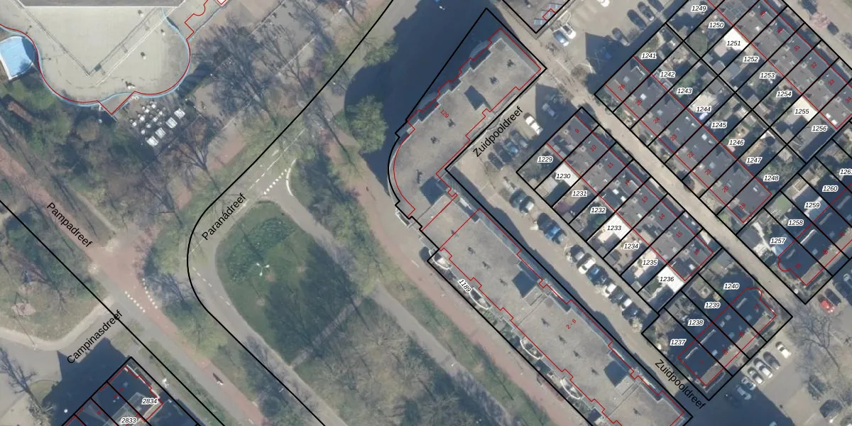 Het perceel waarop Paranádreef 87 staat heeft een oppervlakte van 2110 m². Dit is een zeer groot perceel. De perceeloppervlakte wordt geregistreerd door het Kadaster. Gedetailleerde informatie over de maten van dit perceel kunt u vinden in het rapport Kadastrale kaart met maatvoering van Paranádreef 87.