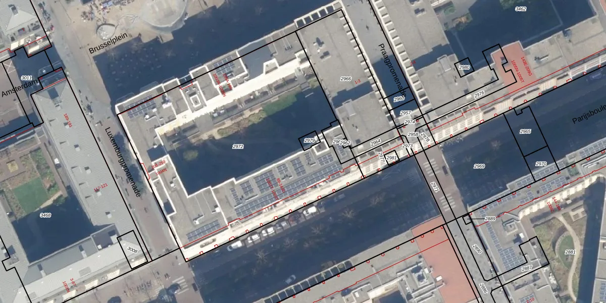 Het perceel waarop Parijsboulevard 105 staat heeft een oppervlakte van 3386 m². Dit is een zeer groot perceel. De perceeloppervlakte wordt geregistreerd door het Kadaster. Gedetailleerde informatie over de maten van dit perceel kunt u vinden in het rapport Kadastrale kaart met maatvoering van Parijsboulevard 105.