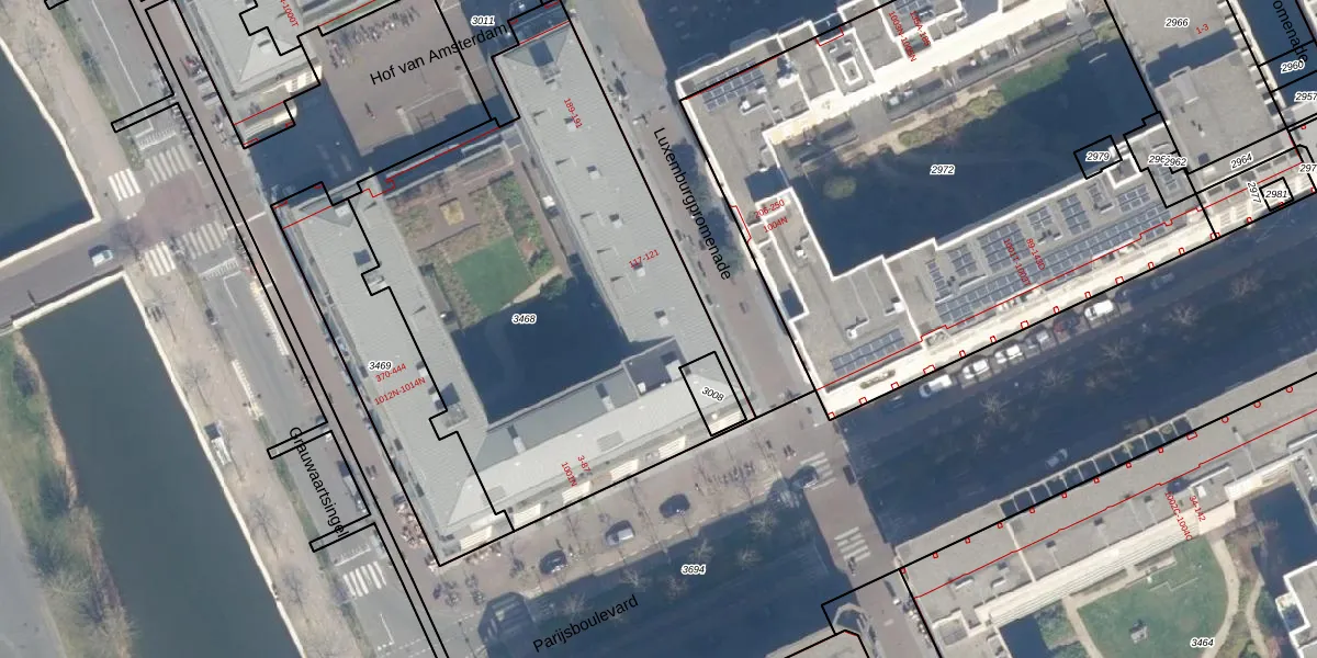 Het perceel waarop Parijsboulevard 11 staat heeft een oppervlakte van 2528 m². Dit is een zeer groot perceel. De perceeloppervlakte wordt geregistreerd door het Kadaster. Gedetailleerde informatie over de maten van dit perceel kunt u vinden in het rapport Kadastrale kaart met maatvoering van Parijsboulevard 11.