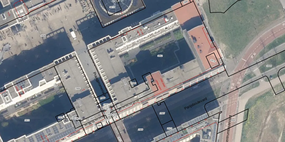Parijsboulevard 185 is gelegen op kadastraal perceel CTR00F3462. Deze kadastrale aanduiding is uniek en wordt gebruikt door het Kadaster om eigendomsrechten en andere zakelijke rechten vast te leggen. Het perceel maakt onderdeel uit van de kadastrale gemeente Catharijne.