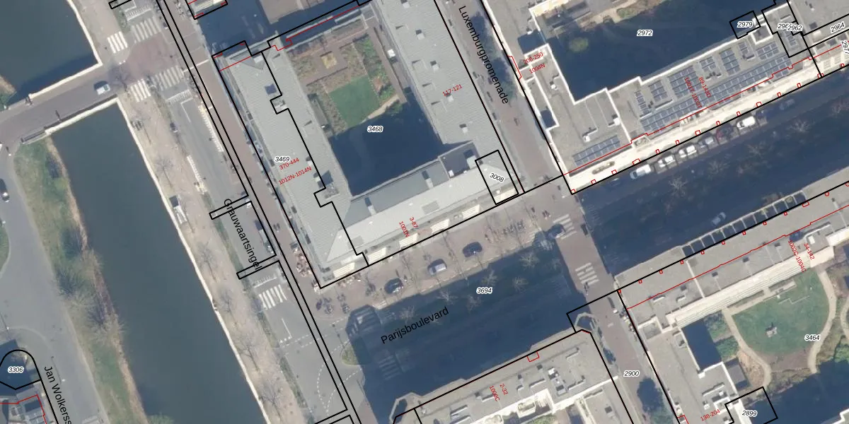 Het perceel waarop Parijsboulevard 3 staat heeft een oppervlakte van 2528 m². Dit is een zeer groot perceel. De perceeloppervlakte wordt geregistreerd door het Kadaster. Gedetailleerde informatie over de maten van dit perceel kunt u vinden in het rapport Kadastrale kaart met maatvoering van Parijsboulevard 3.