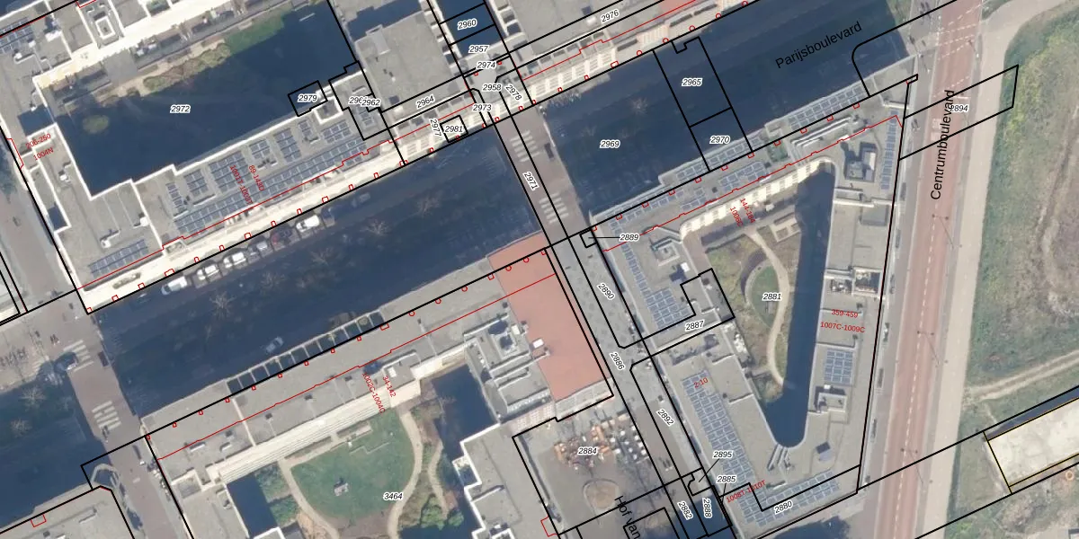 Parijsboulevard 42 is gelegen op kadastraal perceel CTR00F3464. Deze kadastrale aanduiding is uniek en wordt gebruikt door het Kadaster om eigendomsrechten en andere zakelijke rechten vast te leggen. Het perceel maakt onderdeel uit van de kadastrale gemeente Catharijne.