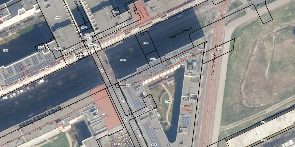 Parijsboulevard 72 is gelegen op kadastraal perceel CTR00F2881. Deze kadastrale aanduiding is uniek en wordt gebruikt door het Kadaster om eigendomsrechten en andere zakelijke rechten vast te leggen. Het perceel maakt onderdeel uit van de kadastrale gemeente Catharijne.