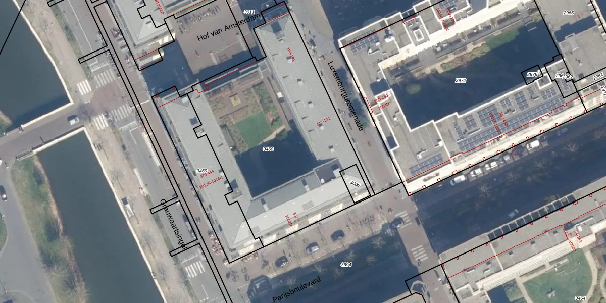 Het perceel waarop Parijsboulevard 83 staat heeft een oppervlakte van 2528 m². Dit is een zeer groot perceel. De perceeloppervlakte wordt geregistreerd door het Kadaster. Gedetailleerde informatie over de maten van dit perceel kunt u vinden in het rapport Kadastrale kaart met maatvoering van Parijsboulevard 83.