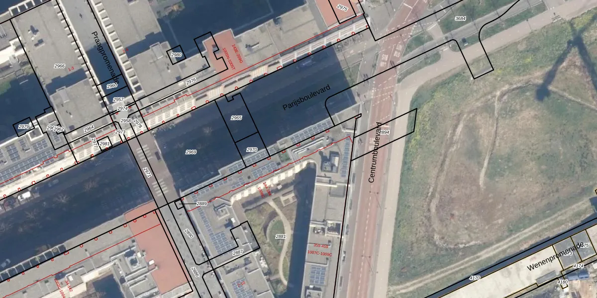 Het perceel waarop Parijsboulevard 92 staat heeft een oppervlakte van 2673 m². Dit is een zeer groot perceel. De perceeloppervlakte wordt geregistreerd door het Kadaster. Gedetailleerde informatie over de maten van dit perceel kunt u vinden in het rapport Kadastrale kaart met maatvoering van Parijsboulevard 92.