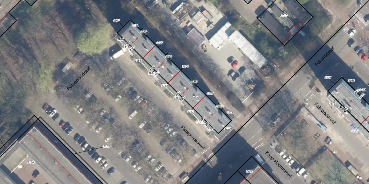 Het perceel waarop Patagoniëdreef 21 staat heeft een oppervlakte van 766 m². Dit is een groot perceel. De perceeloppervlakte wordt geregistreerd door het Kadaster. Gedetailleerde informatie over de maten van dit perceel kunt u vinden in het rapport Kadastrale kaart met maatvoering van Patagoniëdreef 21.