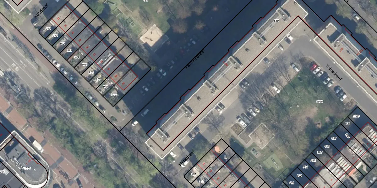 Het perceel waarop Patmosdreef 148 staat heeft een oppervlakte van 2215 m². Dit is een zeer groot perceel. De perceeloppervlakte wordt geregistreerd door het Kadaster. Gedetailleerde informatie over de maten van dit perceel kunt u vinden in het rapport Kadastrale kaart met maatvoering van Patmosdreef 148.