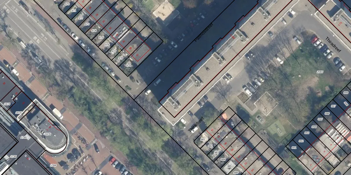 Het perceel waarop Patmosdreef 186 staat heeft een oppervlakte van 2215 m². Dit is een zeer groot perceel. De perceeloppervlakte wordt geregistreerd door het Kadaster. Gedetailleerde informatie over de maten van dit perceel kunt u vinden in het rapport Kadastrale kaart met maatvoering van Patmosdreef 186.