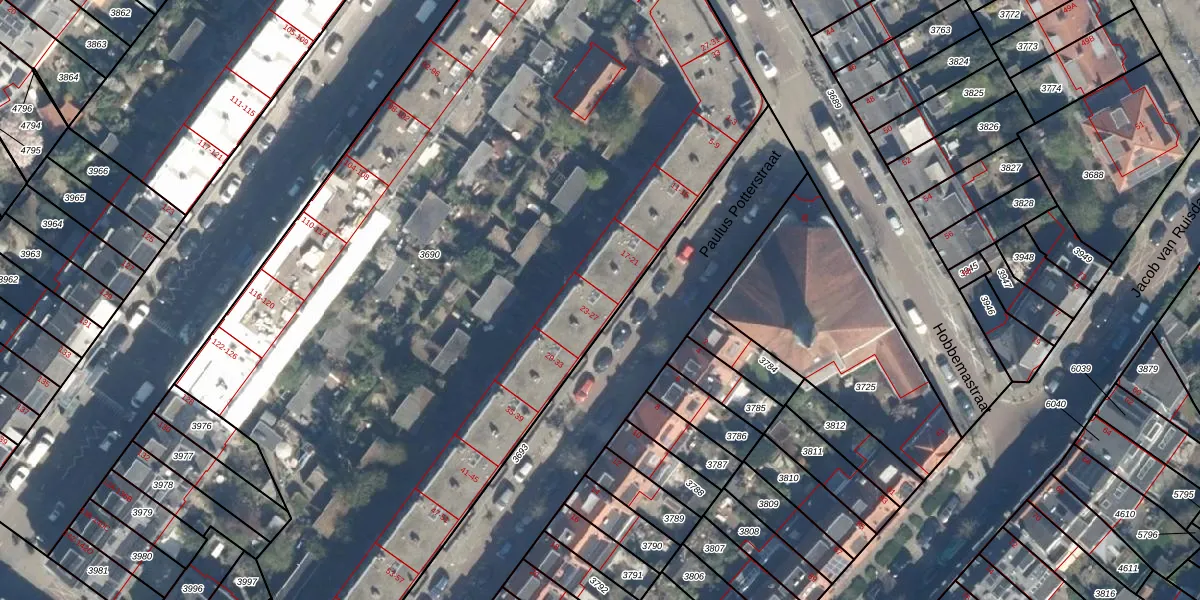 Het perceel waarop Paulus Potterstraat 25 staat heeft een oppervlakte van 5980 m². Dit is een zeer groot perceel. De perceeloppervlakte wordt geregistreerd door het Kadaster. Gedetailleerde informatie over de maten van dit perceel kunt u vinden in het rapport Kadastrale kaart met maatvoering van Paulus Potterstraat 25.