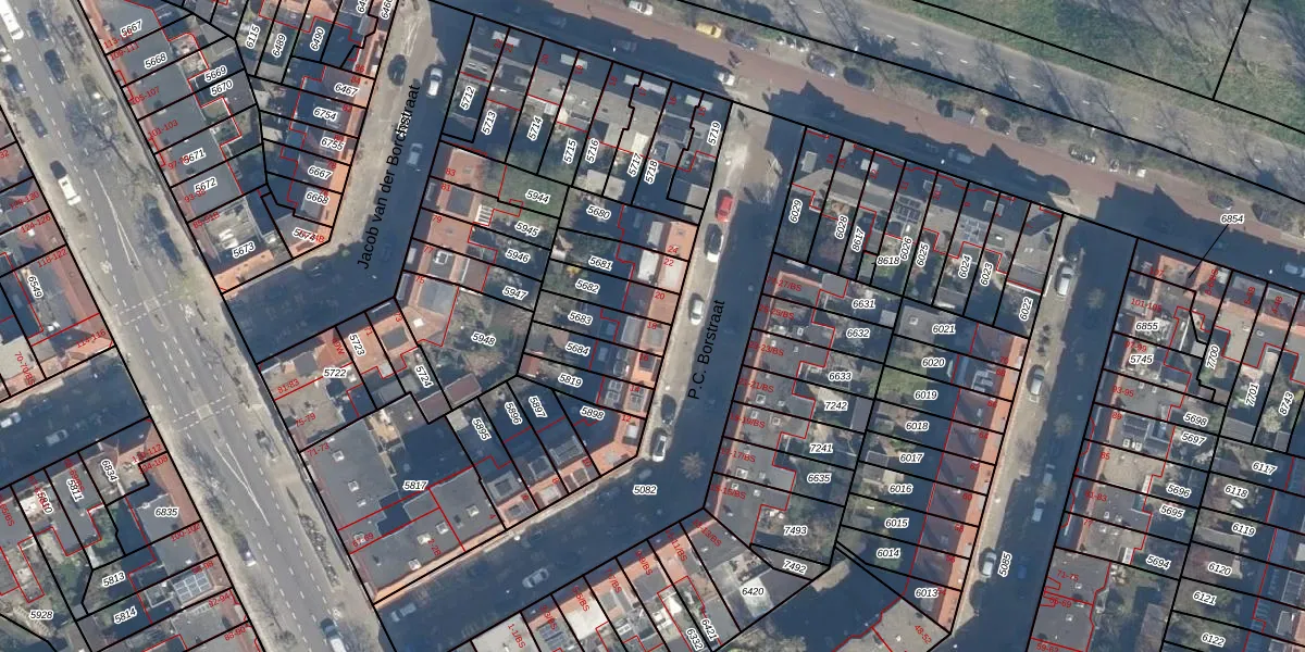 Het perceel waarop P.C. Borstraat 18 staat heeft een oppervlakte van 105 m². Dit is een middelgroot perceel. De perceeloppervlakte wordt geregistreerd door het Kadaster. Gedetailleerde informatie over de maten van dit perceel kunt u vinden in het rapport Kadastrale kaart met maatvoering van P.C. Borstraat 18.