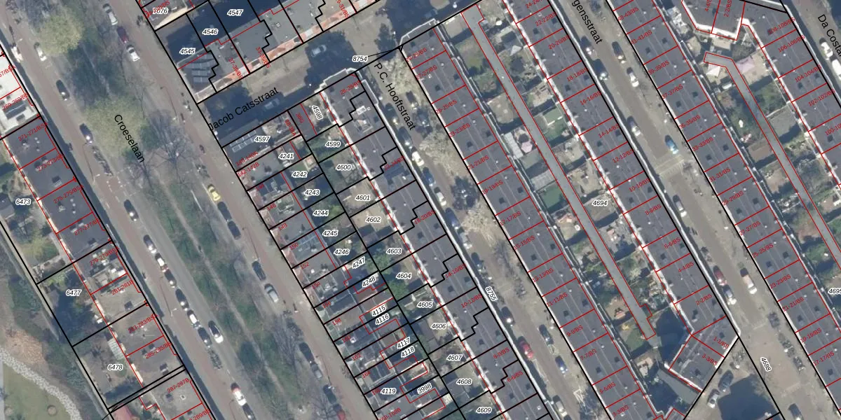 P.C. Hooftstraat 18 is gelegen op kadastraal perceel CTR00D4603. Deze kadastrale aanduiding is uniek en wordt gebruikt door het Kadaster om eigendomsrechten en andere zakelijke rechten vast te leggen. Het perceel maakt onderdeel uit van de kadastrale gemeente Catharijne.