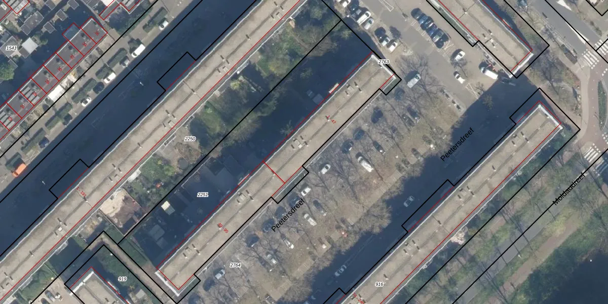 Het perceel waarop Peetersdreef 33 staat heeft een oppervlakte van 2680 m². Dit is een zeer groot perceel. De perceeloppervlakte wordt geregistreerd door het Kadaster. Gedetailleerde informatie over de maten van dit perceel kunt u vinden in het rapport Kadastrale kaart met maatvoering van Peetersdreef 33.