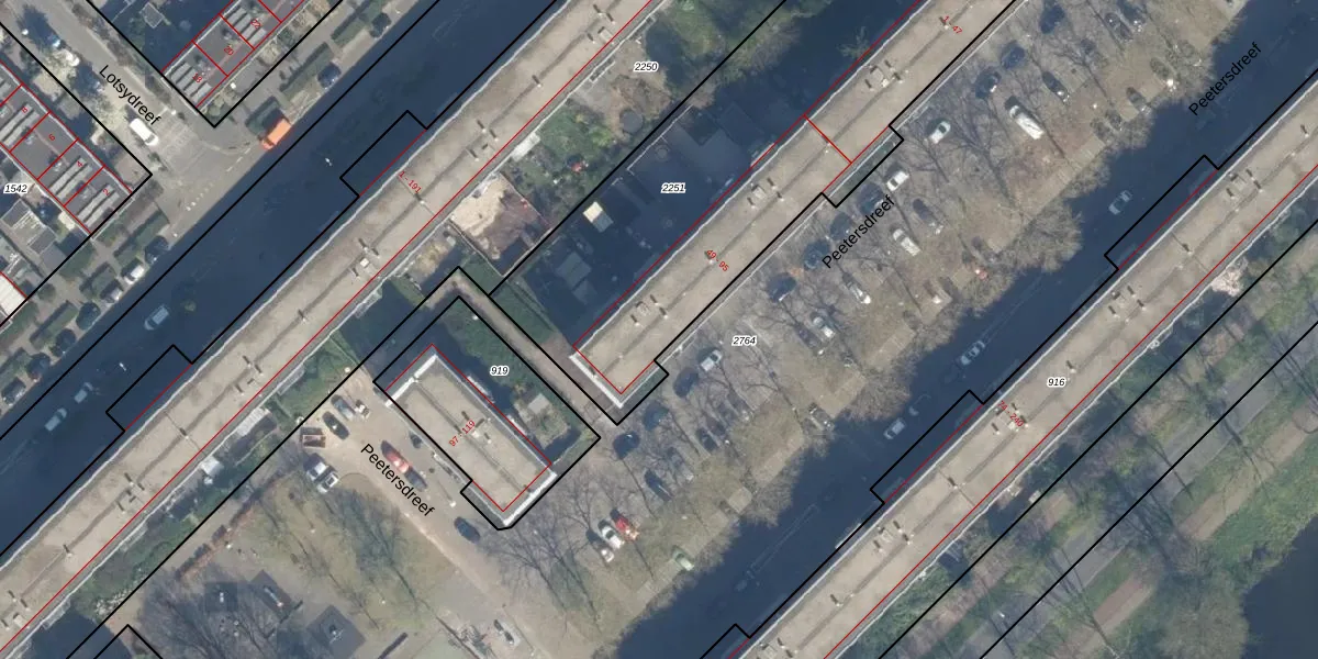 Het perceel waarop Peetersdreef 89 staat heeft een oppervlakte van 2680 m². Dit is een zeer groot perceel. De perceeloppervlakte wordt geregistreerd door het Kadaster. Gedetailleerde informatie over de maten van dit perceel kunt u vinden in het rapport Kadastrale kaart met maatvoering van Peetersdreef 89.