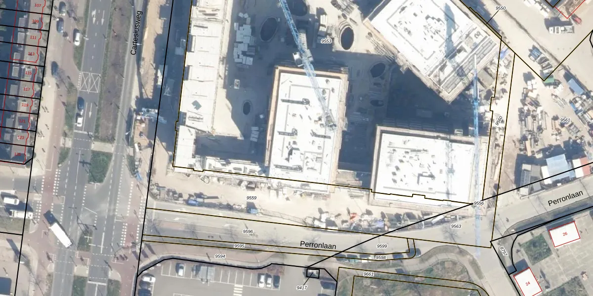Het adres is gelegen op perceel 9553 in de sectie B en de kadastrale gemeente Catharijne. De kadastrale aanduiding is aldus CTR00-B-9553. De oppervlakte van het perceel is 9799 m². Dat is groter dan gemiddeld in Catharijne, waar de gemiddelde perceeloppervlakte op 828,82 m² ligt. De grootste perceeloppervlakte in de kadastrale gemeente is 35,6 ha. De kleinste oppervlakte bedraagt 0 m². Op het perceel zijn 246 adressen aanwezig. In de Basisregistratie Kadaster (BRK) werden de grenzen van het perceel geregistreerd op 29-11-2022.