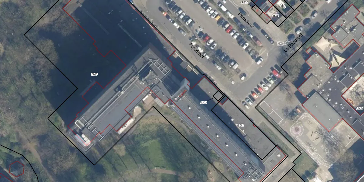Het perceel waarop Perudreef 16 staat heeft een oppervlakte van 6919 m². Dit is een zeer groot perceel. De perceeloppervlakte wordt geregistreerd door het Kadaster. Gedetailleerde informatie over de maten van dit perceel kunt u vinden in het rapport Kadastrale kaart met maatvoering van Perudreef 16.