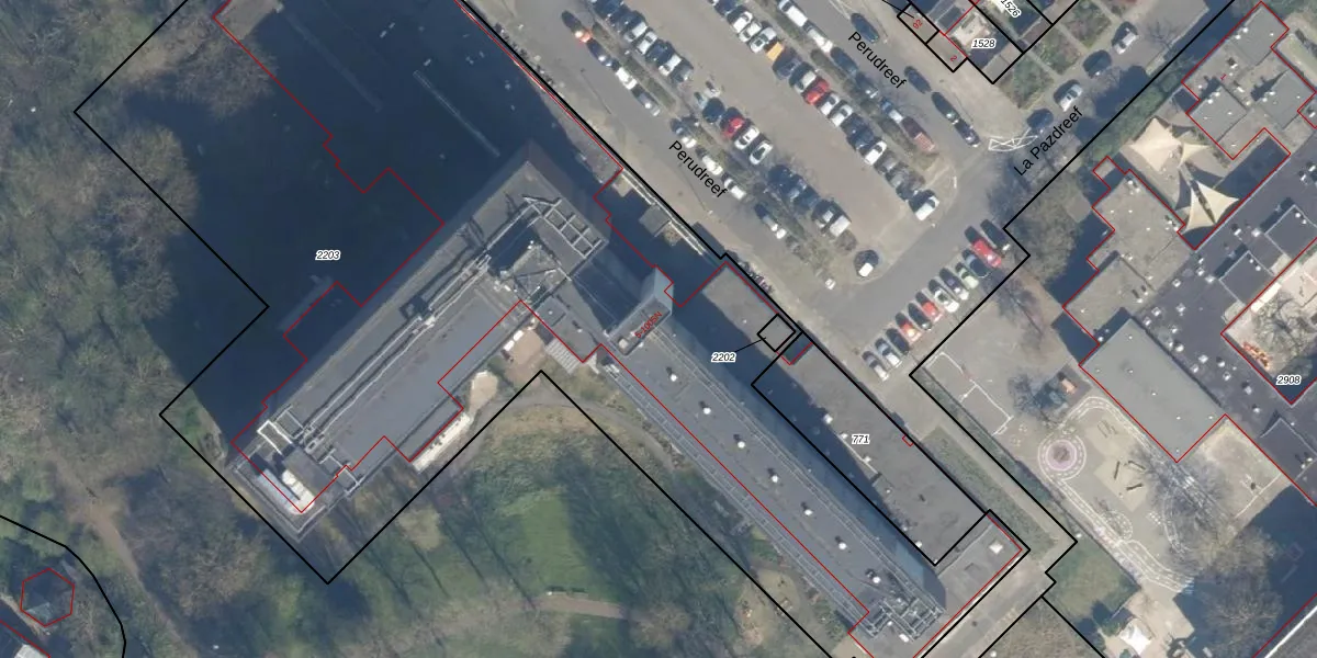 Het perceel waarop Perudreef 87 staat heeft een oppervlakte van 6919 m². Dit is een zeer groot perceel. De perceeloppervlakte wordt geregistreerd door het Kadaster. Gedetailleerde informatie over de maten van dit perceel kunt u vinden in het rapport Kadastrale kaart met maatvoering van Perudreef 87.