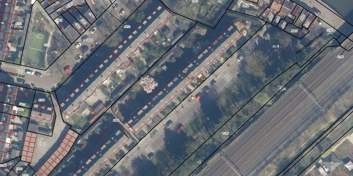 Het perceel waarop Petemoederslaan 7 staat heeft een oppervlakte van 4200 m². Dit is een zeer groot perceel. De perceeloppervlakte wordt geregistreerd door het Kadaster. Gedetailleerde informatie over de maten van dit perceel kunt u vinden in het rapport Kadastrale kaart met maatvoering van Petemoederslaan 7.