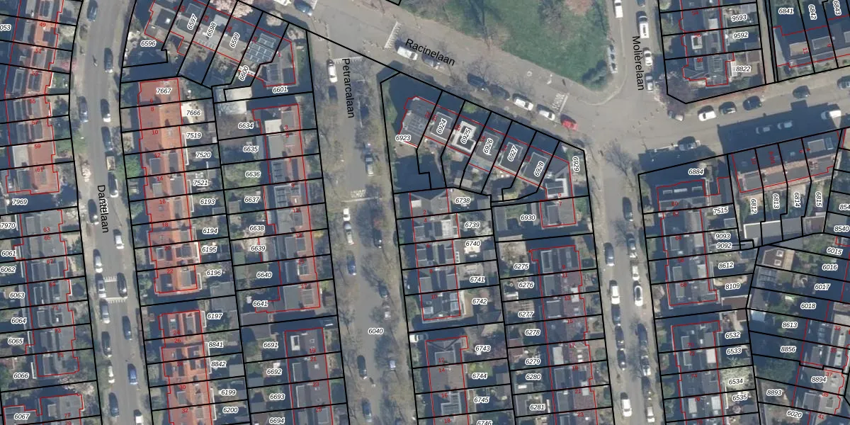 Gebruik de zoekbalk of klik op een perceel voor informatie over de adressen binnen dit perceel.