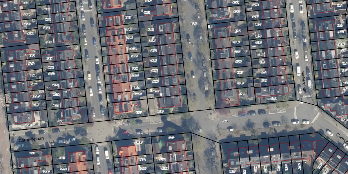 Gebruik de zoekbalk of klik op een perceel voor informatie over de adressen binnen dit perceel.